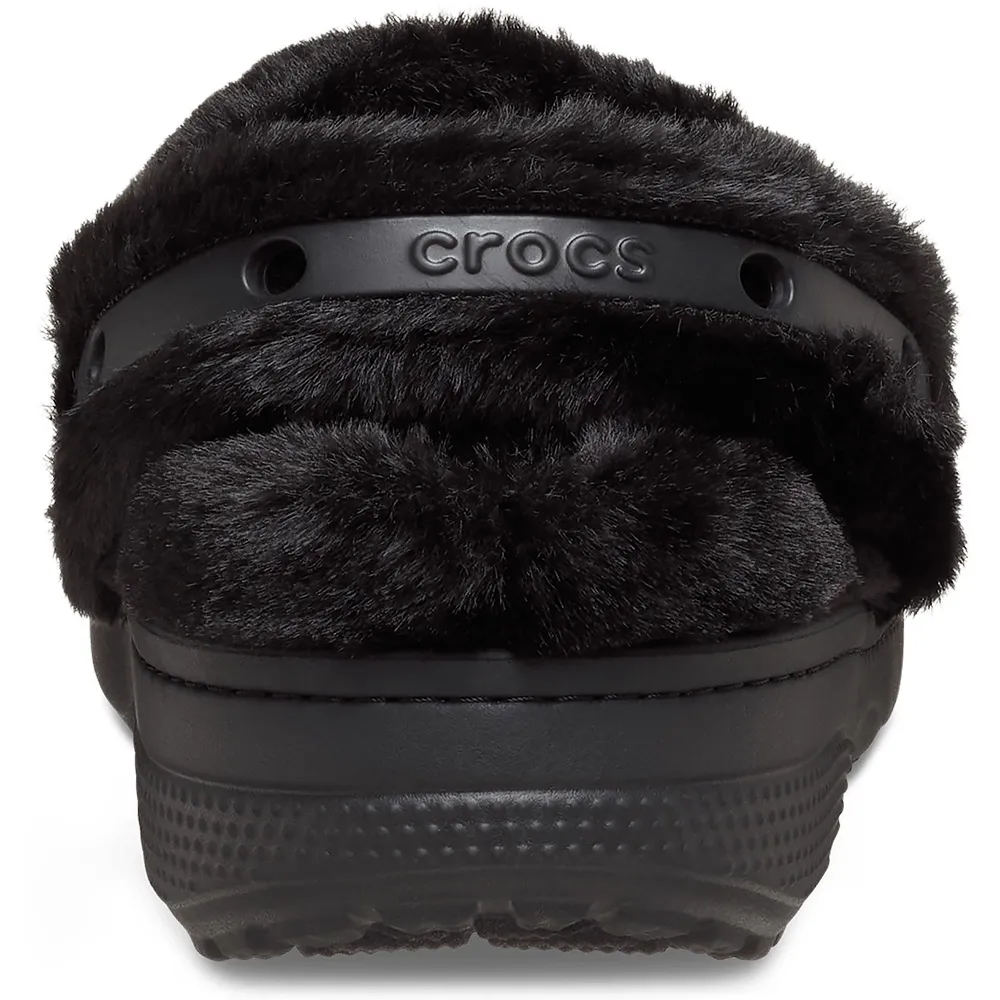 Pehmeä, upottava pohjallinen tarjoaa lisämukavuutta, ja tekoturkisremmissä on Jibbitz™-reiät yksilöintiä varten.