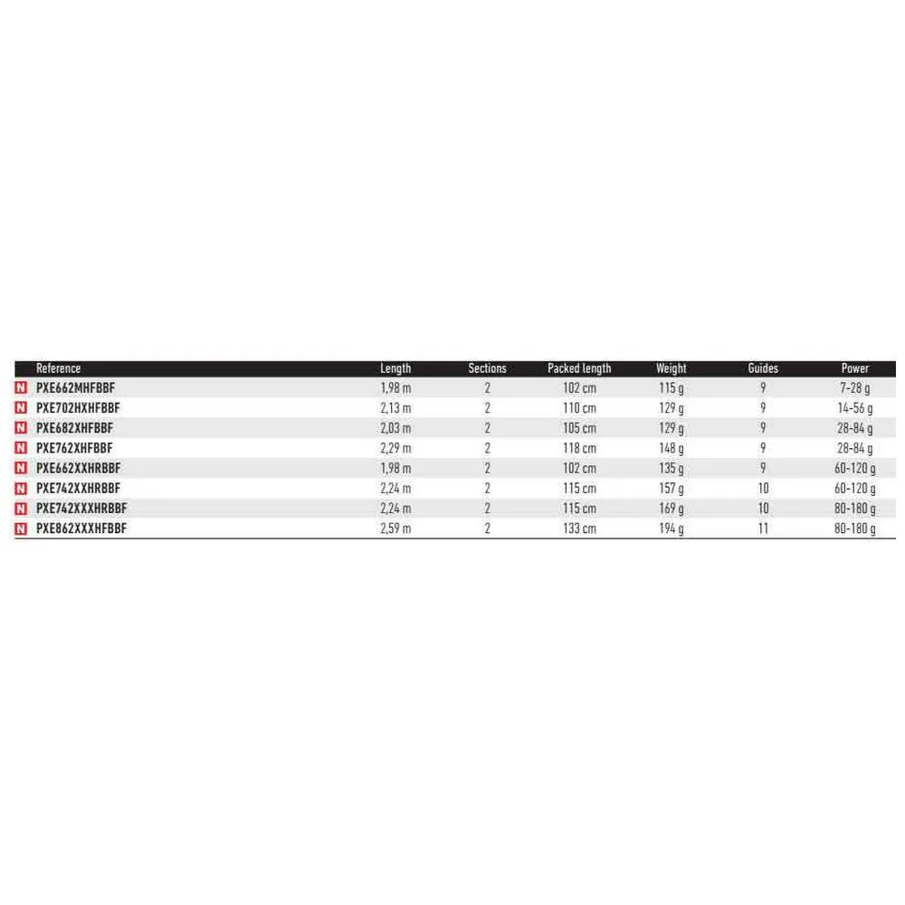 Prorex E -sarja kattaa koko petokalastuksen kirjon. Teholuokitus vaihtelee 7–28 g ja 80–180 g välillä. Valikoimasta löytyy joitain lyhyempiä vavoja float putki- ja venekalastajien käyttöön, kun taas pidemmät mallit sopivat paremmin rantakalastukseen. Kärjen toiminta-aihiot sopivat pehmeille syöteille ja tulpille. Valmistettu korkeamoduulista hiilestä, ja siinä on leikattu kelan istukka, joka pitää sinut suorassa kosketuksessa hiiliytimeen, ja 45° kulmaan asennetut hiilikääreet vahvistavat takaosaa. Sisältää Fuji-ohjaimet K-kehyksillä ja keraamisilla Alconite-vuorilla, jotka on kehitetty erityisesti punoksen käyttöä varten.