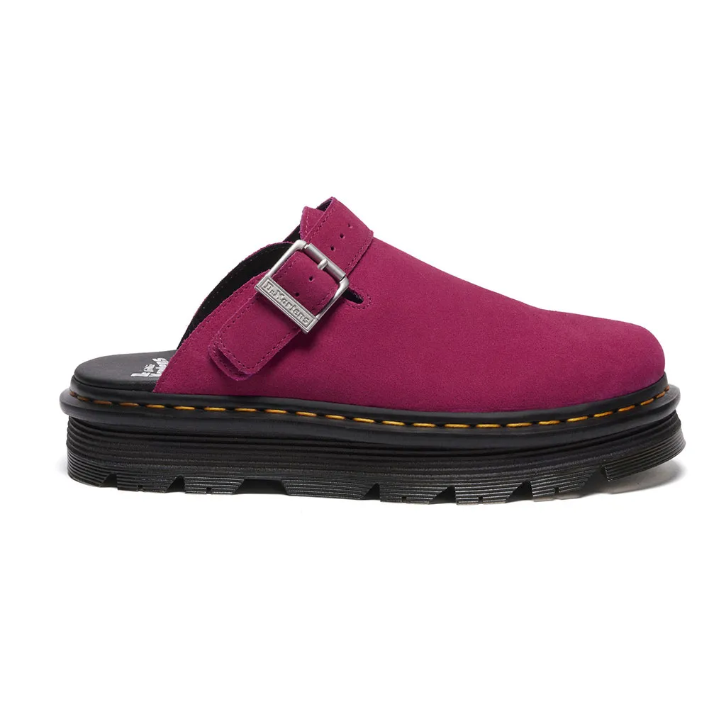 Yhdistä rouhea Dr. Martens -DNA vaivattomaan slip-on-tyyliin. Zebzag Mule Clog tarjoaa ikonista asennetta ja koko päivän mukavuutta SoftWair-muistivaahtopohjallisen sekä kevyen, sahalaitaisen Ziggy-pohjan ansiosta, joka takaa erinomaisen pidon. Kestävästä nahasta valmistettu, sen monipuolinen kääntyvä hihna voidaan pitää edessä tai kiinnittää kantapään taakse. Kestävällä Goodyear-welt-rakenteella valmistettu ja tunnusomaisella keltaisella tikkauksella sekä AirWair-kantapäälenkillä viimeistelty, tämä on erehtymätöntä Docs-henkeä, joka on uudelleen suunniteltu äärimmäistä helppoutta varten