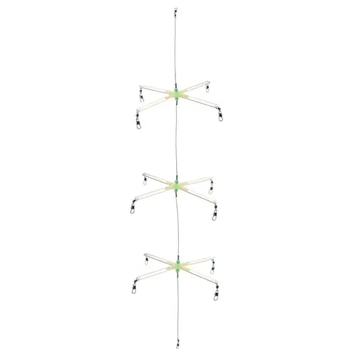 Ylivoimainen sotkeutumaton muotoilu: Rigi on asiantuntevasti valmistettu tukevasta pääsiimasta ja 12 tarkasti sijoitetusta haarakoukusta. Jokainen haarakoukku on huolellisesti sijoitettu laadukkaalla silikoniletkulla, varmistaen koukkujen pysymisen erillään ja vähentäen turhauttavia sotkuja, jotka voivat pilata syvänveden laskun. Käytä enemmän aikaa kalastukseen ja vähemmän aikaa solmujen selvittämiseen.
