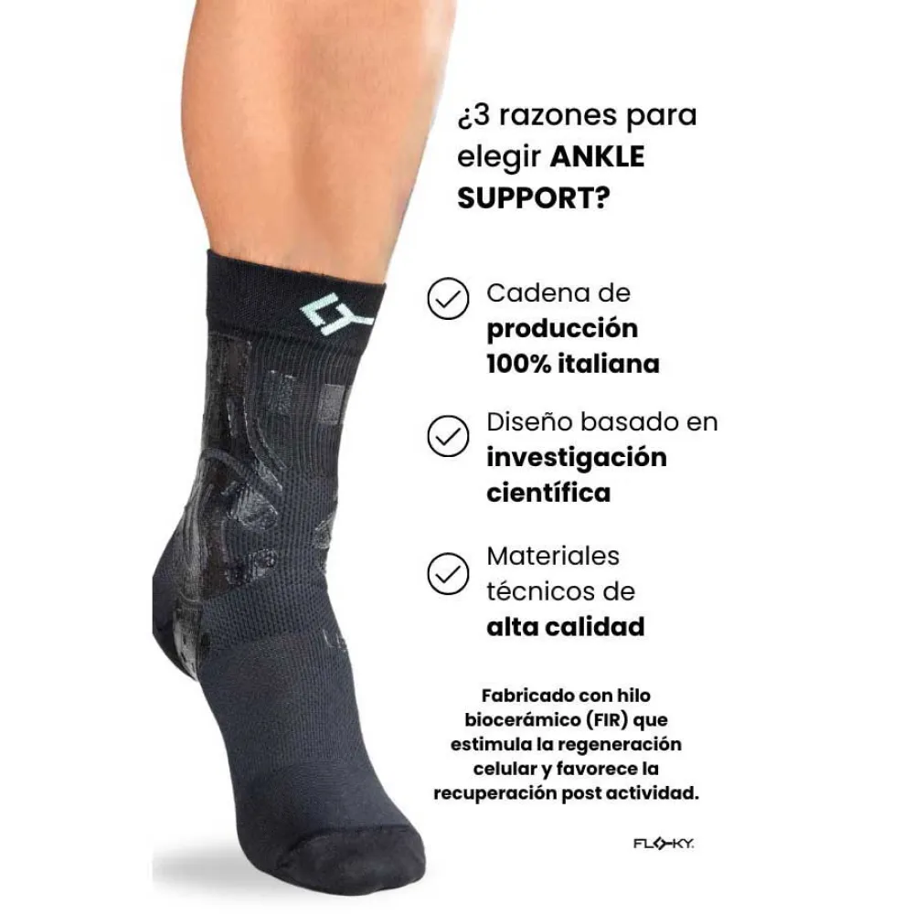 ANKLE SUPPORT -nilkkatuki on ensimmäinen biomekaaninen nilkkatuki, joka on suunniteltu tarjoamaan maksimaalista vakautta ja suojaa urheilun aikana. Se käyttää suojaavia silikoninauhoja ja tulehdusta ehkäiseviä kankaita vakauttamaan nilkkaa, jänteitä ja subtalaariniveltä, vähentäen nyrjähdysten riskiä ja nopeuttaen palautumista.
