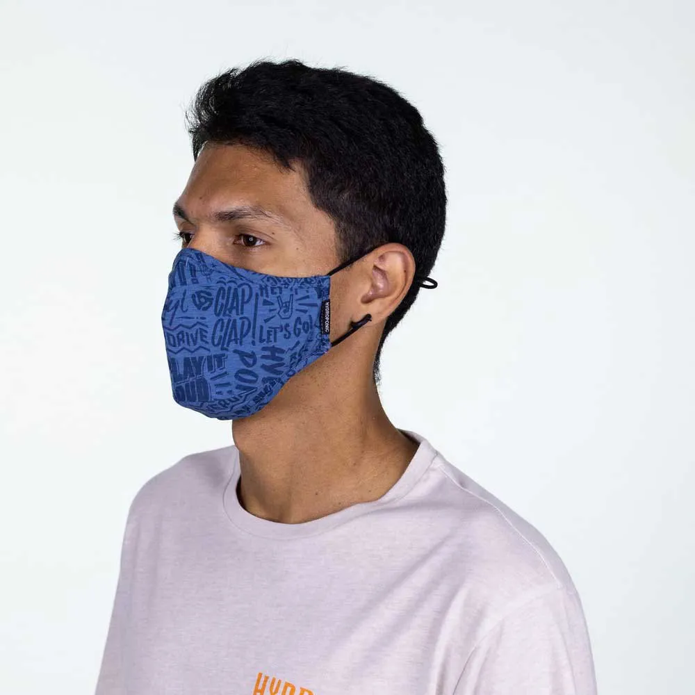 Hengittävillä kankailla valmistettu naamio: 100% polyesteriä ulkopinnalla (parempi kosteutta hylkivä) ja vuori 100% puuvillaa (antaa miellyttävän tunteen iholle). Pestävä ja uudelleenkäytettävä.