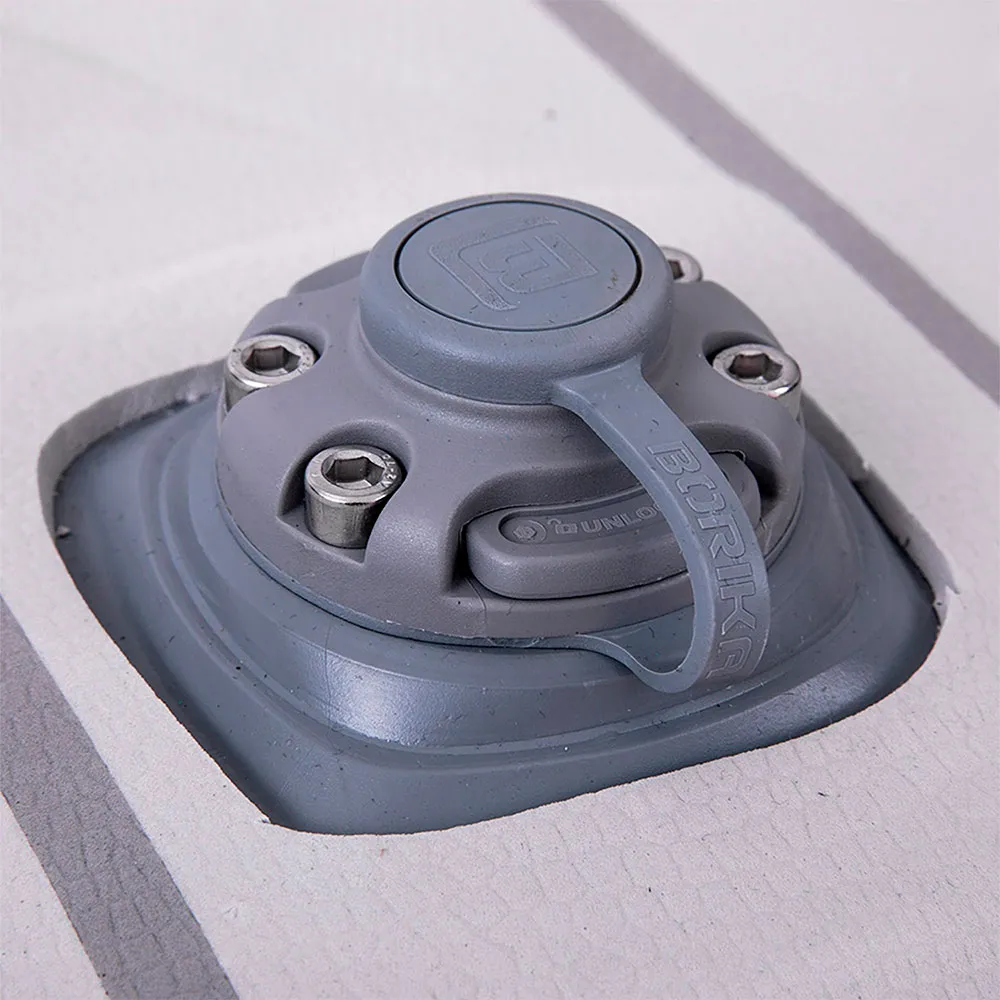 Turvallista sijoittamista varten saari on varustettu neljällä ruostumattomasta teräksestä valmistetulla D-renkaalla, joiden avulla voit ankkuroida sen tukevasti paikalleen, sitoa sen veneeseen tai yhdistää sen laituriin. Koko yläpinta on peitetty pehmeällä, mukavalla ja liukumattomalla kansipehmusteella, joka takaa erinomaisen pidon ja miellyttävän tunteen jalkojen alla, jopa märkänä. Täyttö ja tyhjennys ovat nopeita ja yksinkertaisia käyttämällä korkealaatuista Halkey Roberts -venttiiliä, joka on puhallettavien tuotteiden teollisuudessa tunnettu luotettavuudestaan. Huomaa, että tämä paketti on suunniteltu niille, joilla on jo yhteensopiva pumppu, koska sellaista ei sisälly toimitukseen. ---