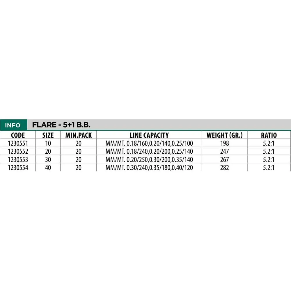Nosta hienostelukalastuksesi tasoa LINEAEFFE Flare -avokelalla. Kevyen kaluston kalastajille suunniteltu kela tarjoaa 6 tarkkuuskuulalaakerinsa ansiosta poikkeuksellisen tasaisen ja sulavan kelauksen, parantaen herkkyyttä havaita pienimmätkin tärpit. Erittäin kevyt 198 gramman runko takaa täydellisen tasapainon ja koko päivän mukavuuden, vähentäen väsymystä. Ole valmiina mihin tahansa tilanteeseen mukana tulevan ylimääräisen grafiittipuolan avulla, jonka ansiosta voit vaihtaa siimaa nopeasti. Monipuolisen 5.2:1 välityssuhteen ansiosta, joka tarjoaa ihanteellisen yhdistelmän nopeutta ja voimaa, Flare on avaimesi tarkkuuteen, hallintaan ja menestykseen vesillä