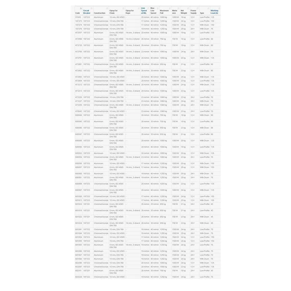 "X" vertikaalinen windlasses sopivat purje- ja moottoriveneitä välillä 6m 27m pitkä. Niillä on eri motorization attribuutteja-mallin mukaan.
