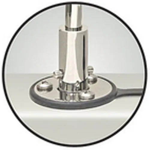 Ruostumattomasta teräksestä valmistettu pidätintappi mahdollistaa grillin pyörimisen ja lukittumisen 8 eri asentoon mahdollistaen sen siirtämisen sisä- ja ulkopuolelle.