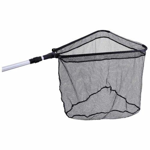 Klassinen taitettava laskuverkko, jossa on kolmionmuotoinen reuna ja vahva muovinen pää. Kompakti, 50x50 cm kokoinen verkko, jossa on pehmeä verkko, tekee siitä erittäin monipuolisen. Teleskooppikahva mahdollistaa kalan vaivattoman ulottuvuuden kalastuksen aikana.