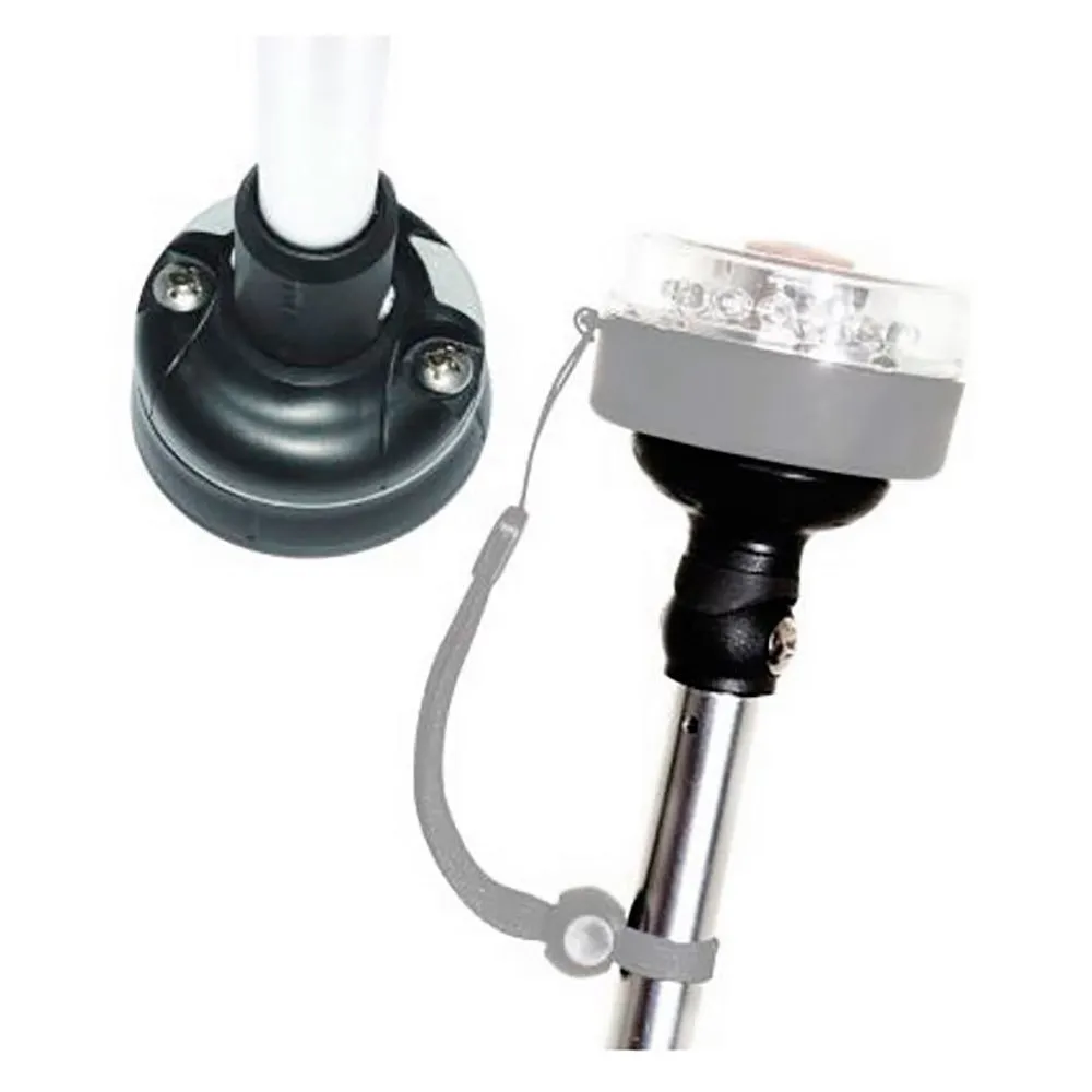 NAVISAFE-vaaka-teleskooppituki on suunniteltu helppokäyttöiseksi asennukseksi ja yhteensopivaksi laajan valikoiman NAVISAFE-navigaatiovalojen kanssa. Sen turvallinen kiinnitysjärjestelmä varmistaa vakaan ja värähtelemättömän alustan, estäen valojasi siirtymästä tai irtoamasta navigoinnin aikana. Tuen tyylikäs ja kompakti muotoilu integroituu saumattomasti veneesi estetiikkaan parantaen sen yleisilmettä.