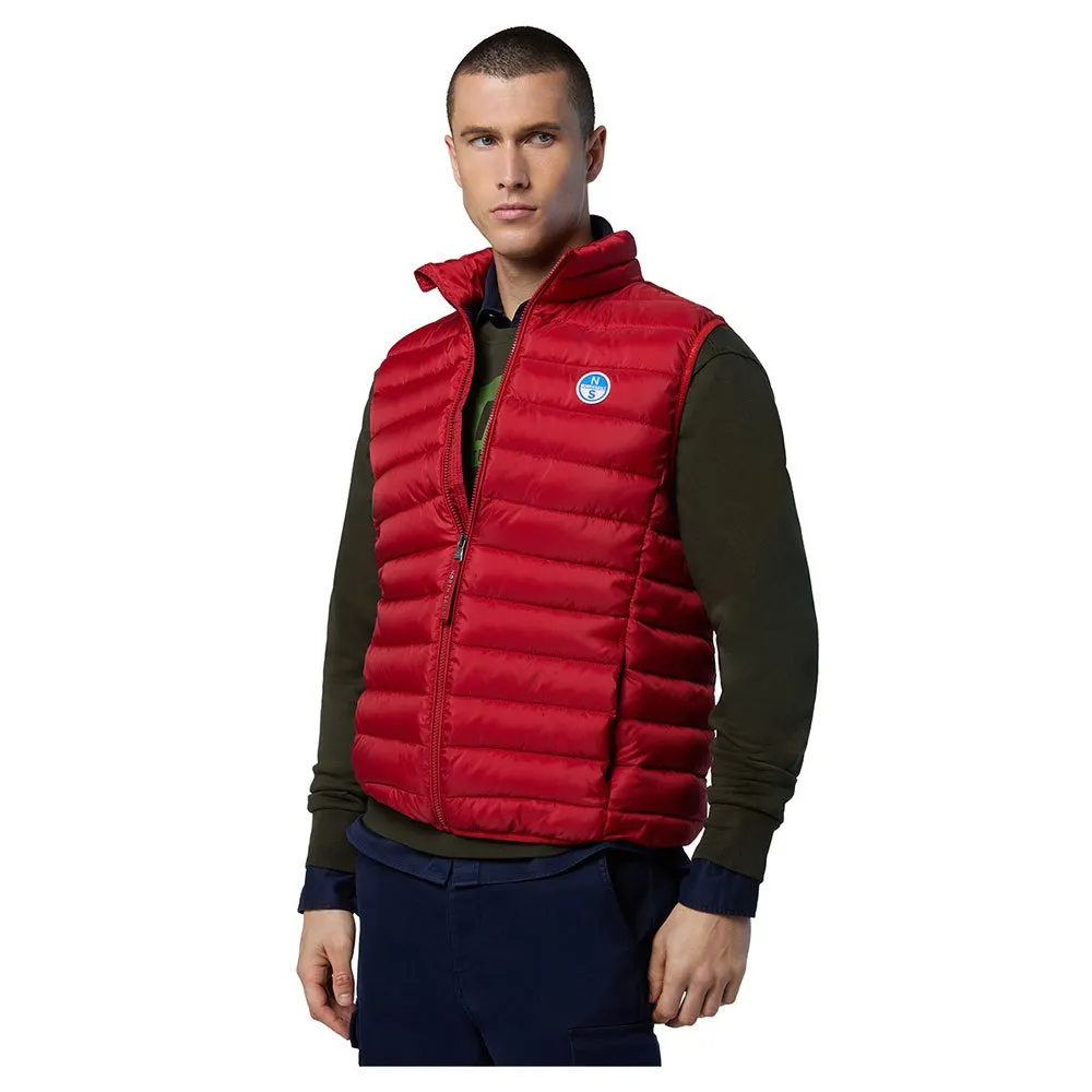 NORTH SAILS Skye -liivi punaisella laavavärillä on tyylikäs ja toimiva lisä jokaisen miehen vaatekaappiin. Tämä hihaton liivi sopii täydellisesti kerrospukeutumiseen viileämpinä kuukausina tarjoten sekä lämpöä että tyyliä.