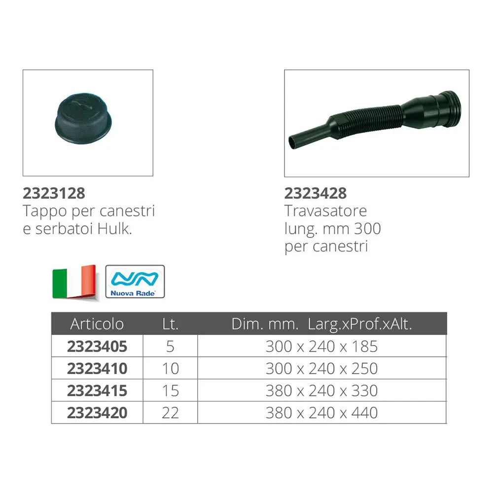 Täydennä vesiseikkailuasi NUOVA RADE 22L -pullolla, luotettavalla ja kestävällä ratkaisulla veneesi tai muun vesikulkuneuvon bensiinin säilyttämiseen ja kuljettamiseen. Tämä suuren kapasiteetin pullo tarjoaa runsaasti polttoainetta pidemmille retkille, joten voit nauttia keskeytymättömästä ajasta vedessä huolehtimatta polttoaineen loppumisesta. Turvallisuus ja käytettävyys mielessä suunniteltu NUOVA RADE 22L -pullo on tärkeä varuste kaikille veneilyharrastajille.