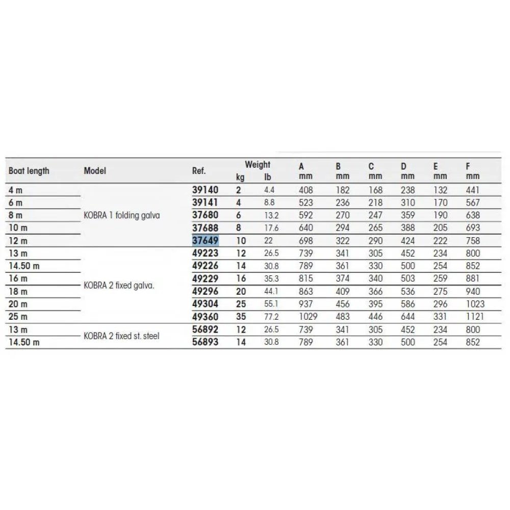 Tekniset tiedot Plastimo KOBRA 2 Kiinteä 12 Ankkuria