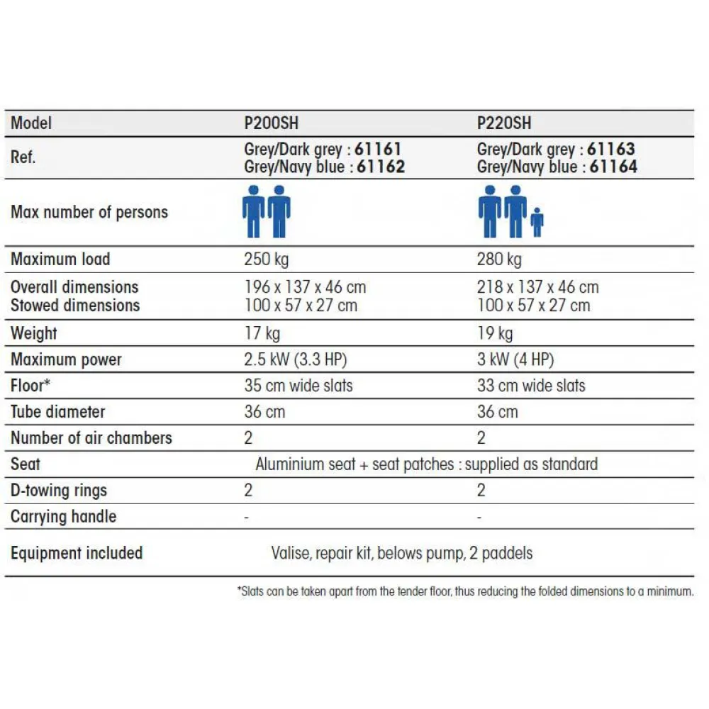 Tekniset tiedot Plastimo Raid II P200SH -kumivene