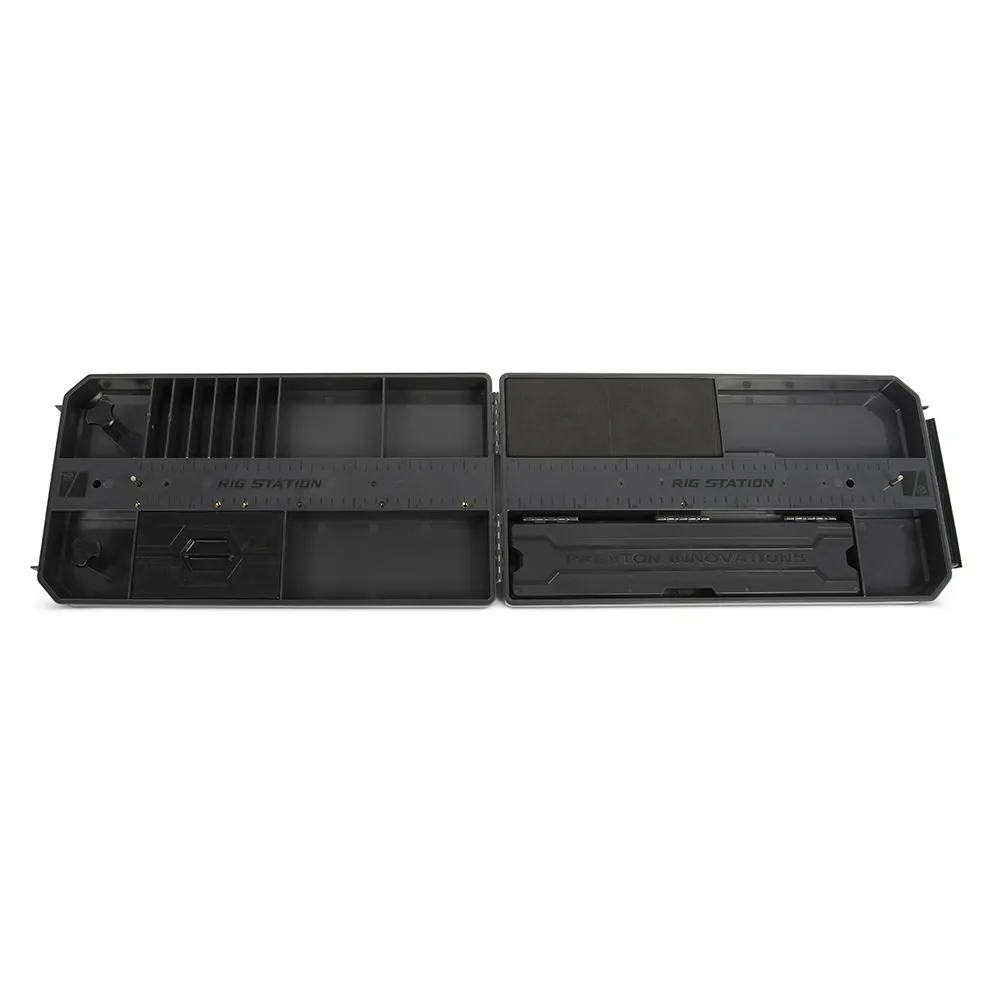 Ihanteellinen pohjaongen valmisteluun, Rig Station säilyttää kaikki olennaiset pohjaongen valmistusmateriaalit, kuten siiman, haulit, kohot ja pienet tarvikkeet, kuten koukut ja silikoni.