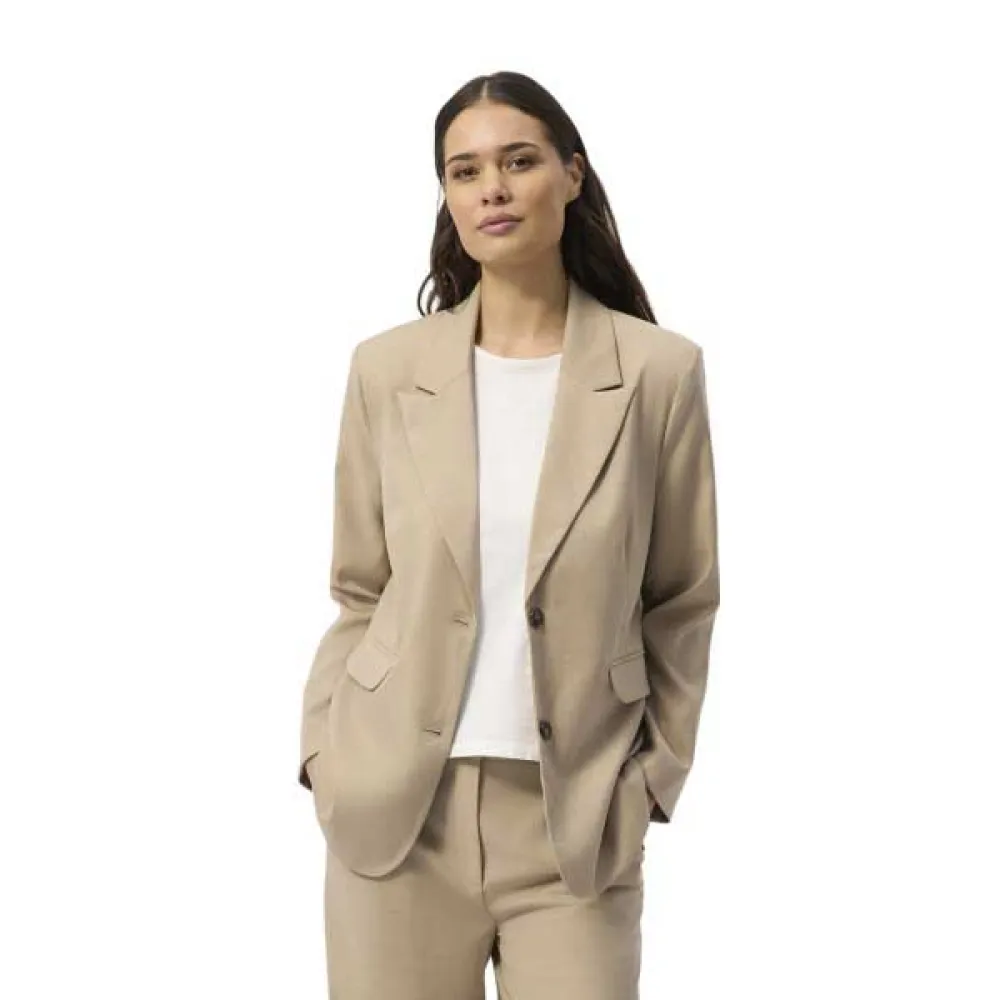 Becky Blazerissa on tyylikäs, räätälöity siluetti, joka imartelee jokaista vartalon muotoa. Sen puhtaat linjat ja minimalistinen muotoilu huokuvat hillittyä eleganssia, jonka avulla voit tehdä vaikutuksen sanomatta sanaakaan. Bleiserissä on klassinen kauluskäänne, yksirivinen nappikiinnitys ja kätevät taskut tärkeille tavaroillesi.