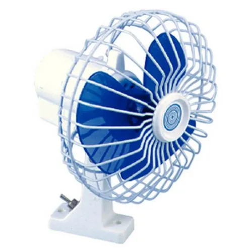 Muovinen pohja kytkin ohjaus. 90 ° värähtelyliike. Ruoste todiste valkoinen vinyylipäällysteiseen tuuletinkotelo. Mitat: 9 1/2 "kokonaiskorkeus, 6 1/2" syvyys (edestä taakse), 7 "dia. Tuuletinkotelo, 6" fan blade, 3 5/8 "x 1 5/8" base.