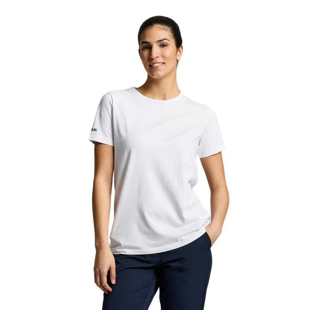 SLAM Deck Short Sleeve T-Shirt Bright White on tyylikäs ja mukava naisten vaate. Tämä t-paita on valmistettu korkealaatuisista materiaaleista, ja se tuntuu iholla pehmeältä ja kevyeltä. Kirkas valkoinen väri tuo raikkaan ja elävän lisän mihin tahansa asuun, mikä tekee siitä monipuolisen eri tilaisuuksiin.