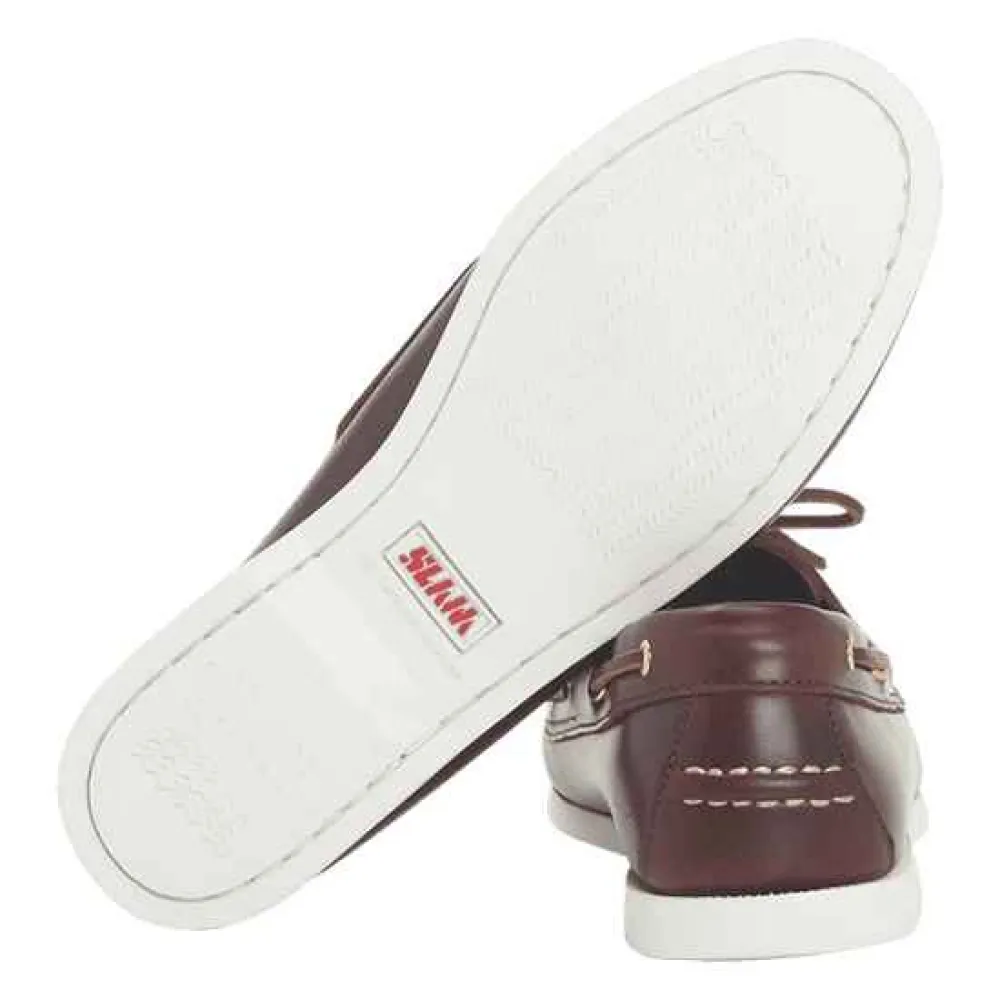 Liukumattomat, ei merkintöjä ja käsin ommeltuja, nämä klassiset venekengät ovat erittäin mukavia ja monipuolisia. Valmistettu putkimaisella rakenteella rasvatusta aidosta nahasta, niissä on ruosteenkestävät silmukat ja käsin ommeltu pohja, jossa on aaltoilevien urien erityinen muotoilu, jotka avautuvat takaamaan täydellisen pidon märillä pinnoilla. Yläosassa painettu logo ja pohjassa kontrastivärinen logo.