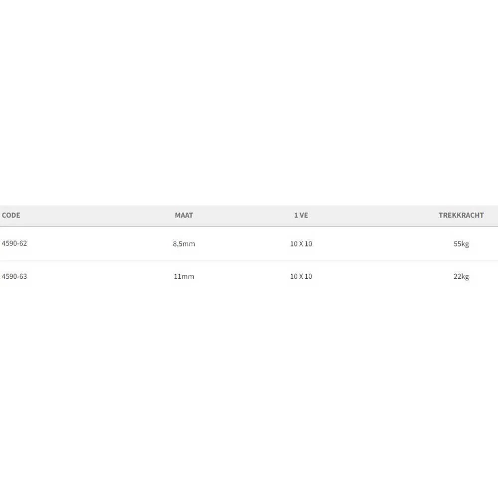 Huolimatta niiden kompaktista ja huomaamattomasta profiilista, näiden leikareiden lujuus on yksinkertaisesti hämmästyttävä. 55 kg:n vetolujuudella tämä pieni metalliosa tarjoaa valtavan voiman ja mielenrauhan. Voit kalastaa kevyemmillä siimoilla ja hienovaraisemmilla esityksillä, tietäen, että leikarisi ei koskaan ole heikko lenkki ketjussa. Tämä kestävä ruostumaton teräsleikari on täydellisen kokoinen hienostuneiden perukkeiden ja takiloiden luomiseen. Leikari on 11 mm pitkä, mikä tekee siitä ihanteellisen valinnan drop shot -takiloihin, Carolina-takiloihin ja herkkien elävien syöttien esityksiin, joissa minimaalinen jalanjälki on ratkaisevan tärkeää varovaisten kalojen säikäyttämisen välttämiseksi.