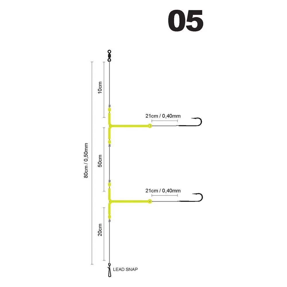 Parannettu tehokkuus: Jokainen peruke on asiantuntevasti suunniteltu kohdistumaan tiettyihin lajeihin ja tilanteisiin. Kokoonpanot on optimoitu täydelliseen syötin esillepanoon, mikä lisää mahdollisuuksiasi houkutella puremia lajeilta kuten turska, kampela, meribassi ja monet muut. Huolellinen rakenne auttaa estämään sotkuja ja varmistaa, että syöttisi näyttää luonnolliselta ja houkuttelevalta vedessä.