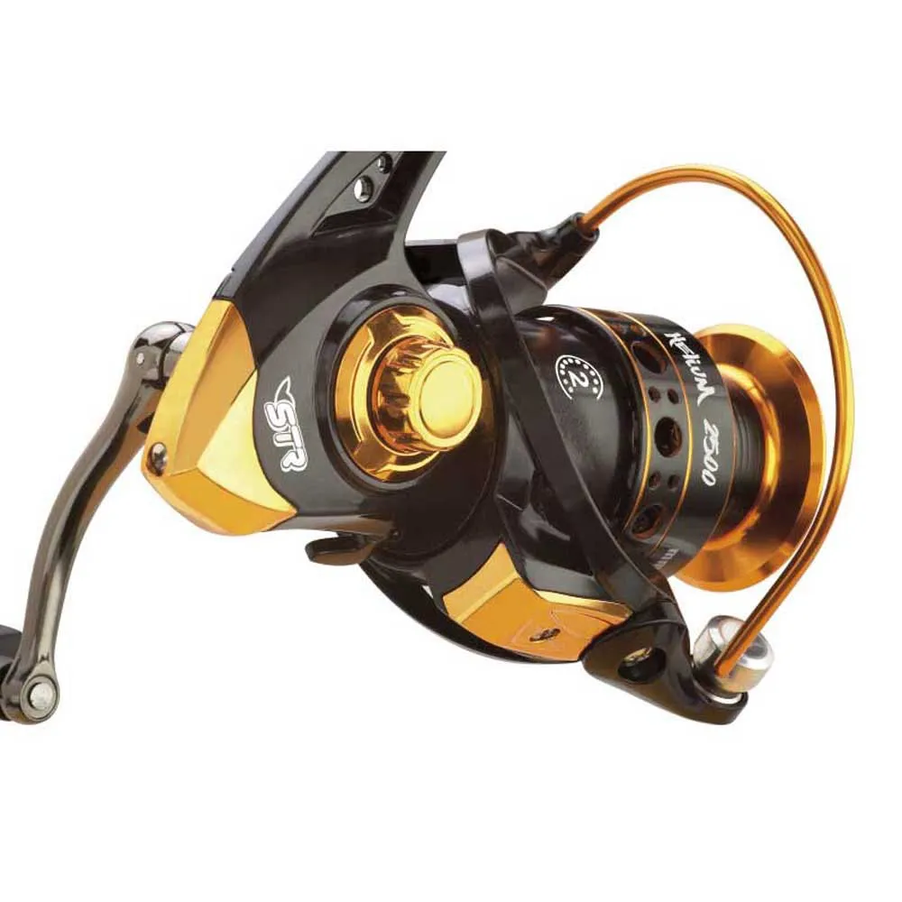 STR Helium Spinning Reel Black/Gold on laadukas kela, joka on suunniteltu spinning-käyttöön. Tämä tyylikäs ja näyttävä kela on valmistettu kestävästä materiaalista ja siinä on musta ja kultainen väritys, joka antaa sille tyylikkään ulkonäön.