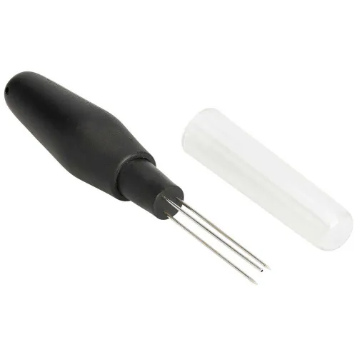 SUNSET SUNTOOL EASY BAITING -työkalu koostuu ergonomisesta kahvasta, joka on valmistettu erittäin kestävästä ABS: stä, 3 neulasta ja suojakorkista. Neulat toimivat tukena ja helpottavat siten syöttien pitämistä ja sitomista joustavalla langalla. Tätä varten on osoitettu kaksi neulaa syötin optimaalisen tunkeutumisen ja ylläpidon varmistamiseksi. Kolmas neula on ontto koukun kärjen asettamiseksi ja aiemmin valmistetun ja sidotun syötin liu'uttamiseksi Tästä eteenpäin tämä SUNSET SUNTOOL EASY BAITING -työkalu on välttämätön kalastuslaatikossa! Se helpottaa hauraiden syöttien (matoja, pehmeitä rapuja, simpukoita, veitsiä, kalakukintoja) syöttien syöttämistä. Ihanteellinen cocktaileihin, se optimoi syötin esittelyn ja pidon koukussa heittäessä ja kalastettaessa!