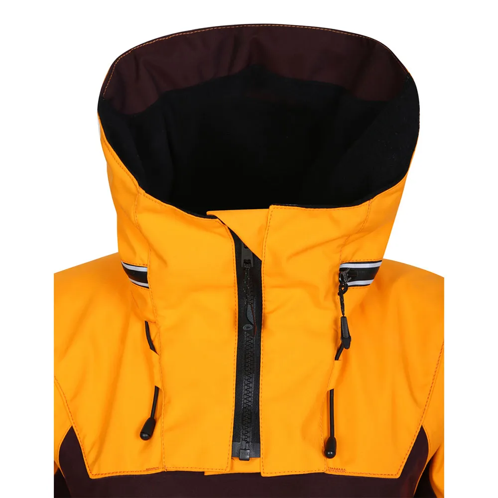 - Ergonomisesti muotoiltu, säädettävä, huomiota herättävä, pakattava huppu fleecevuoratussa kauluksessa