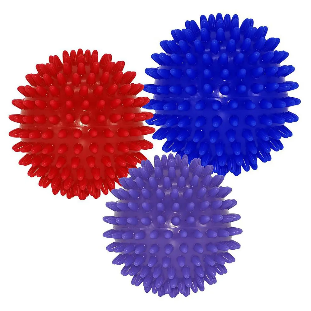 Pakkauksessa on kolme eri kovia palloja, joita voidaan käyttää sekä kuntoutuksessa että eri kehon alueiden hierontaan.