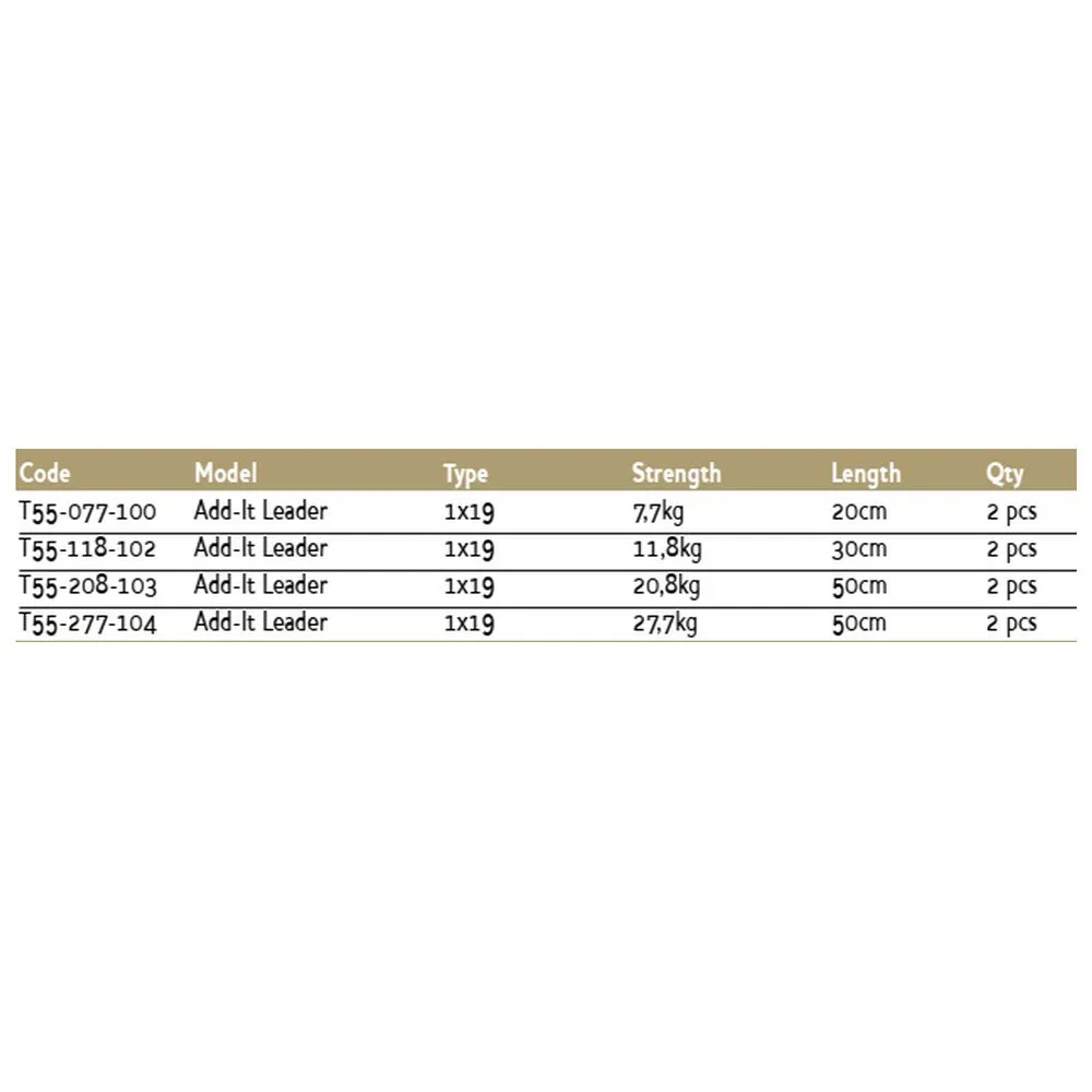 Ensiluokkaisista materiaaleista valmistettu ja poikkeuksellisen kestävyyden takaamiseksi suunniteltu WESTIN Add-It Leader on rakennettu kestämään vaativien kalastusympäristöjen rasitukset. Vankka pikalukko on korroosionkestävä ja suunniteltu kestämään raskaita kuormia, mikä varmistaa turvallisen yhteyden jopa taistellessa voimakkaiden kalojen kanssa. Tämä luotettavuus antaa sinulle mielenrauhan keskittyä taisteluun tietäen, että leaderisi ei petä ratkaisevalla hetkellä. Add-It Leader on saatavana useissa eri kokoluokissa ja vetolujuuksissa, joiden avulla voit mukauttaa asetuksesi mihin tahansa kalastustilanteeseen, kevyistä makean veden sovelluksista raskaisiin suolaisen veden harrastuksiin.