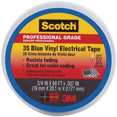 Le ruban de codage couleur électrique Scotch® Vinyl 35 est utilisé dans les câbles de codage couleur d'identification de phase et les systèmes de tuyauterie et pour marquer les zones de sécurité.