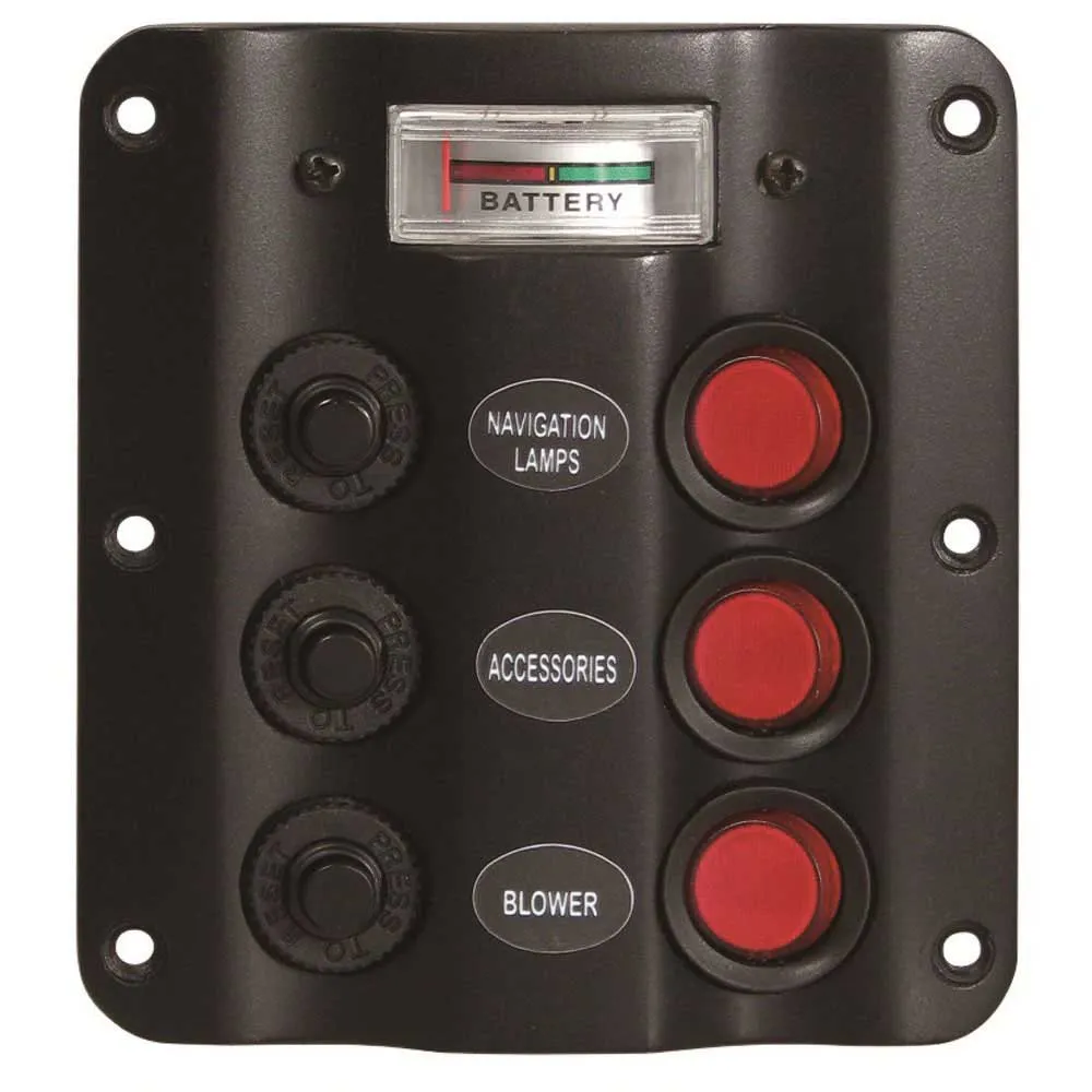 Trois Interrupteurs à Bascule Indépendants : Le panneau est équipé de trois interrupteurs à bascule robustes et faciles à utiliser, offrant un contrôle positif et tactile de vos lumières, pompes, équipements de navigation et autres accessoires. Chaque interrupteur est conçu pour une longue durée de vie et des performances fiables.