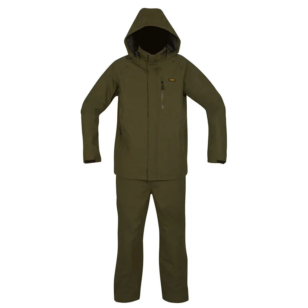 Ensemble imperméable deux pièces léger. Comprend une veste et des salopettes. Tissu imperméable vert armée de 5000mm. Logo discret Avid. Fermetures éclair camouflées résistantes à l´eau avec tirettes de marque. Poignets et chevilles élastiques. La veste dispose d´une capuche escamotable. Les salopettes ont des bretelles élastiques réglables. Disponible en tailles S-4XL.