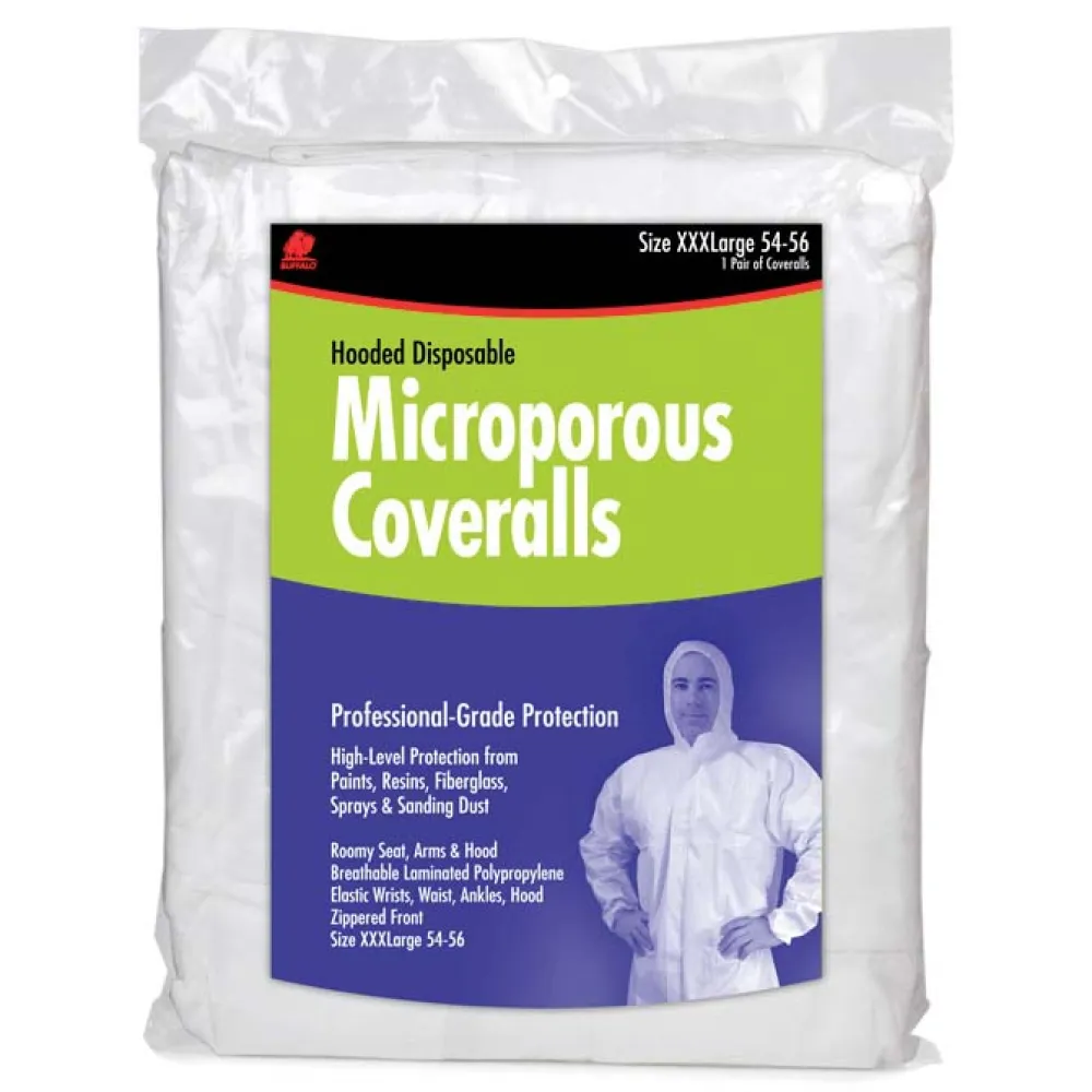 Le procédé de stratification spécialisée de microporeuses Coveralls permet un maximum de respirabilité tout en offrant un niveau élevé de protection de vernis, résines, fibre de verre, les peintures et la poussière de ponçage. Ces combinaisons résistantes hautement chimiques offrent un front à deux voies à fermeture à glissière, poignets élastiques, chevilles et à la taille, plus avant pratique et poches arrière. Une alternative rentable à Tyvek.