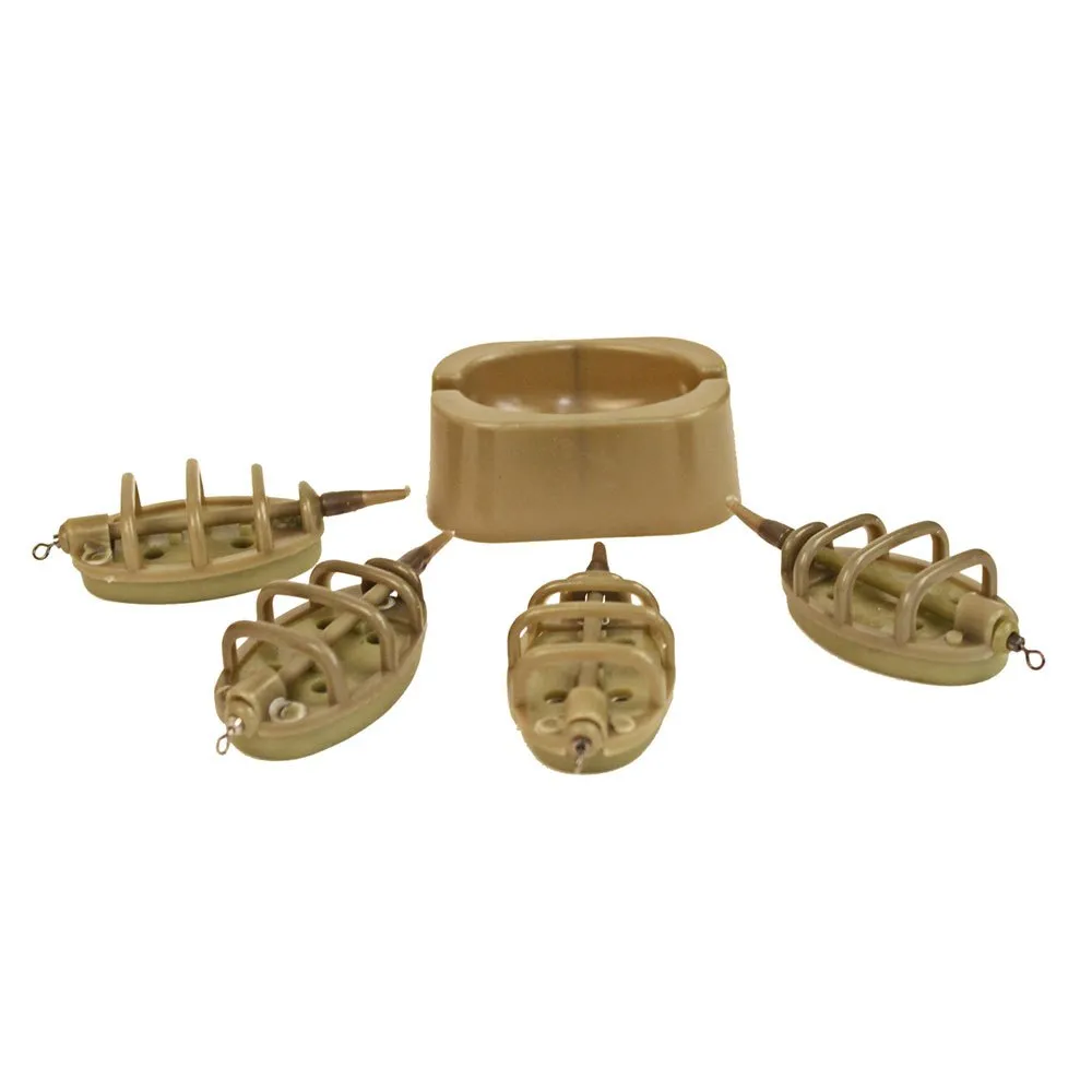 Ces poids sont fabriqués à partir de matériaux 100% écologiques, sans tungstène ni plomb. Ils ont été moulés à partir d´un alliage de zinc totalement respectueux de l´environnement. En cas de rupture, ils ne polluent pas l´environnement et constituent une solution même pour les eaux où l´utilisation d´équipements de largage est réglementée. L´ensemble comprend 4 pièces de method feeders et un moule, dont l´utilisation est extrêmement rapide et simple.