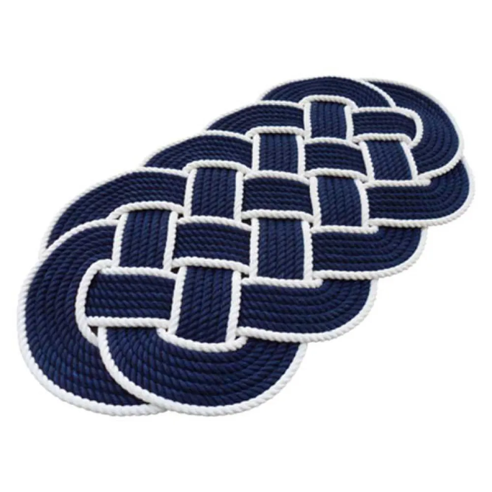 Le tapis présente une belle combinaison de couleurs bleu et blanc, ce qui lui donne un aspect nautique et rafraîchissant. Ce design bicolore ajoute une touche de sophistication à tout pont de bateau, créant une ambiance accueillante et élégante.