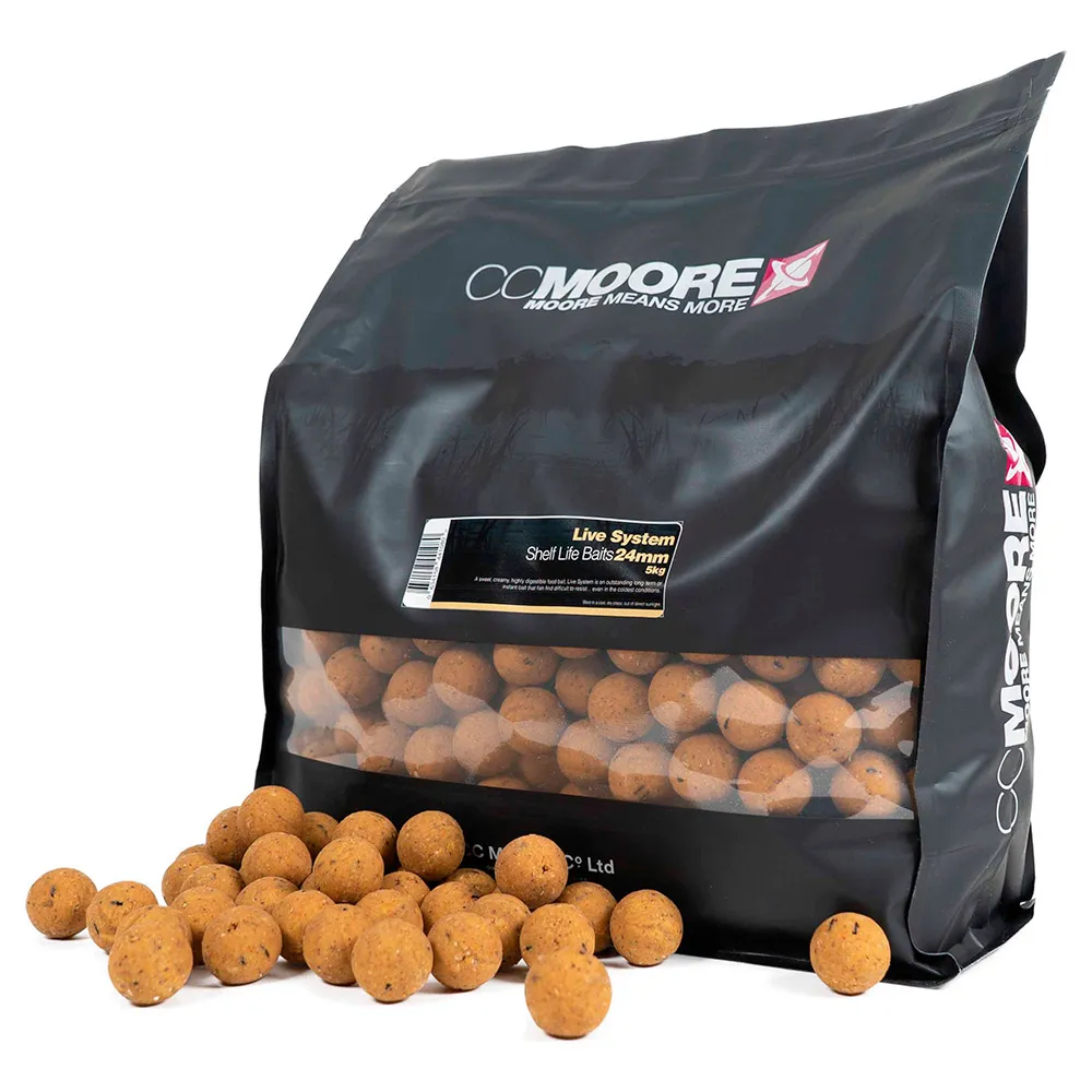 CC Moore Live System 24mm 5kg24 5KG LIVE SYS Live System est une bouillette très attractive, douce et crémeuse, à base de protéines de lait et de nourriture pour oiseaux, qui a acquis une réputation presque légendaire en tant qu´appât à gros poissons instantané et à long terme depuis sa sortie en 2002.