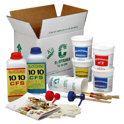 - B, 1 jeu de minipompes, 3 bidons en plastique, 0,5 L de microfibres naturelles, 0,5 L d´additif n° 2, 0,5 L de poudre de micro-remplissage, 100 g de microfibres minérales, 1 bâton, 6 brosses jetables, 10 gants jetables.