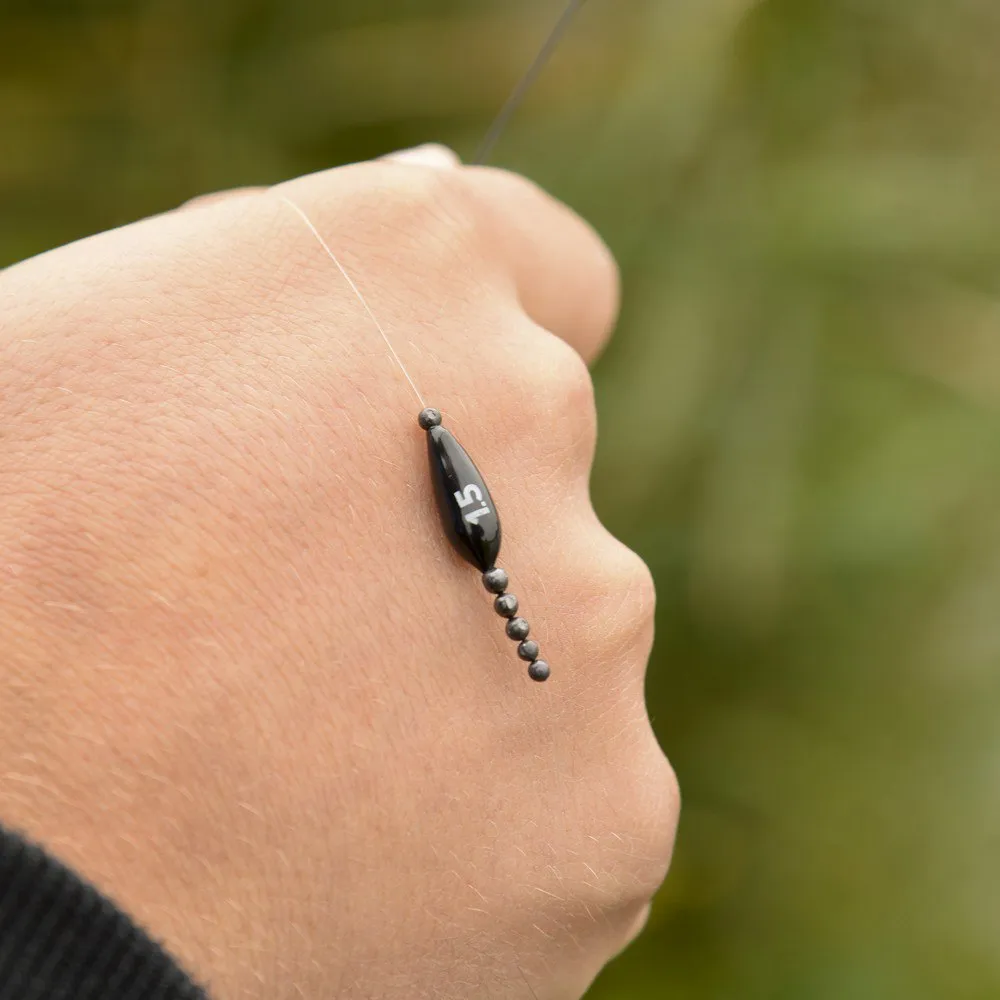 Grâce à ces olivettes parfaitement équilibrées et dotées d´un revêtement noir, il est possible d´équilibrer au plus juste votre flotteur sans pour autant avoir une masse importante de plombs sur la ligne.