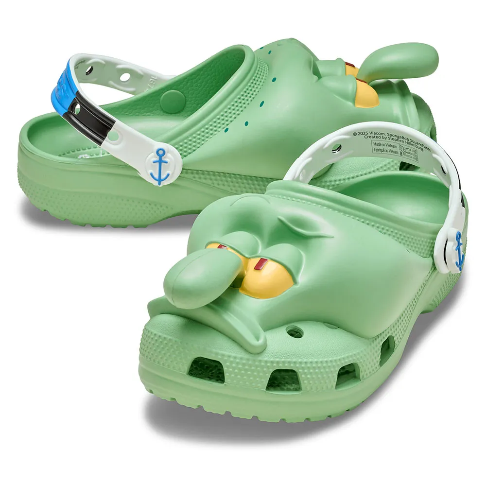 Ils sont là : le terrible sabot classique Bob l´éponge Squidward. Géniaaaaaaaal. Rejoignant la gamme de chaussures à l´effigie des personnages de Bob l´éponge, ce style exclusif présente une ressemblance 3D incroyablement réaliste du visage de Squidward, y compris son nez bulbeux et son froncement de sourcils emblématique. Pour rendre cette paire encore plus personnelle, ajoutez votre collection préférée de charms Jibbitz™ Bob l´éponge ou sur le thème nautique à la bride arrière.