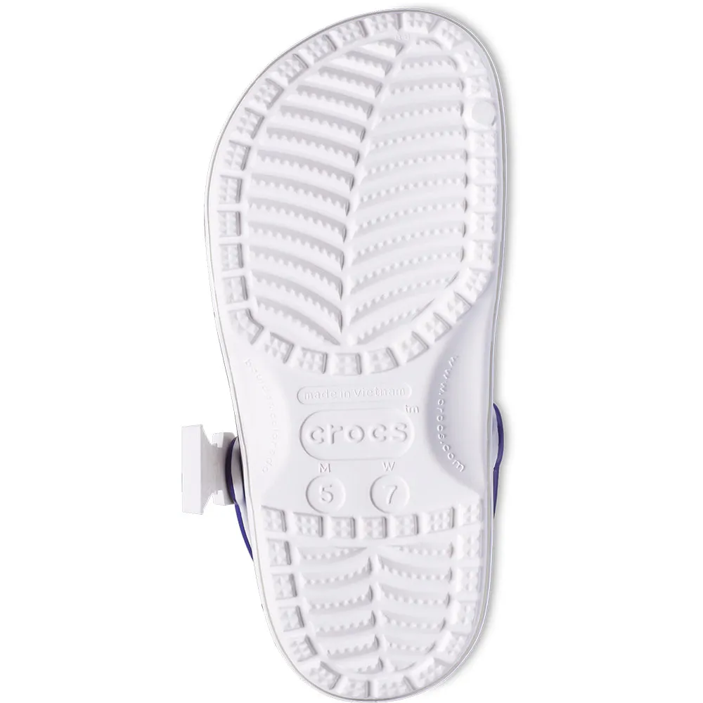Le droïde héroïque de la saga épique STAR WARS™ a inspiré cette confortable Classic Clog R2-D2. Cette édition limitée présente des détails de droïde imprimés sur la tige qui incarnent tout le charme de R2-D2, avec des jambes pivotantes près de chaque contrefort de talon pour compléter ce design de personnage transformé en sabot. Ce modèle est associé à deux breloques Jibbitz™ R2-D2 et à beaucoup d´espace pour plus de personnalisation afin d´afficher votre passion pour STAR WARS™.