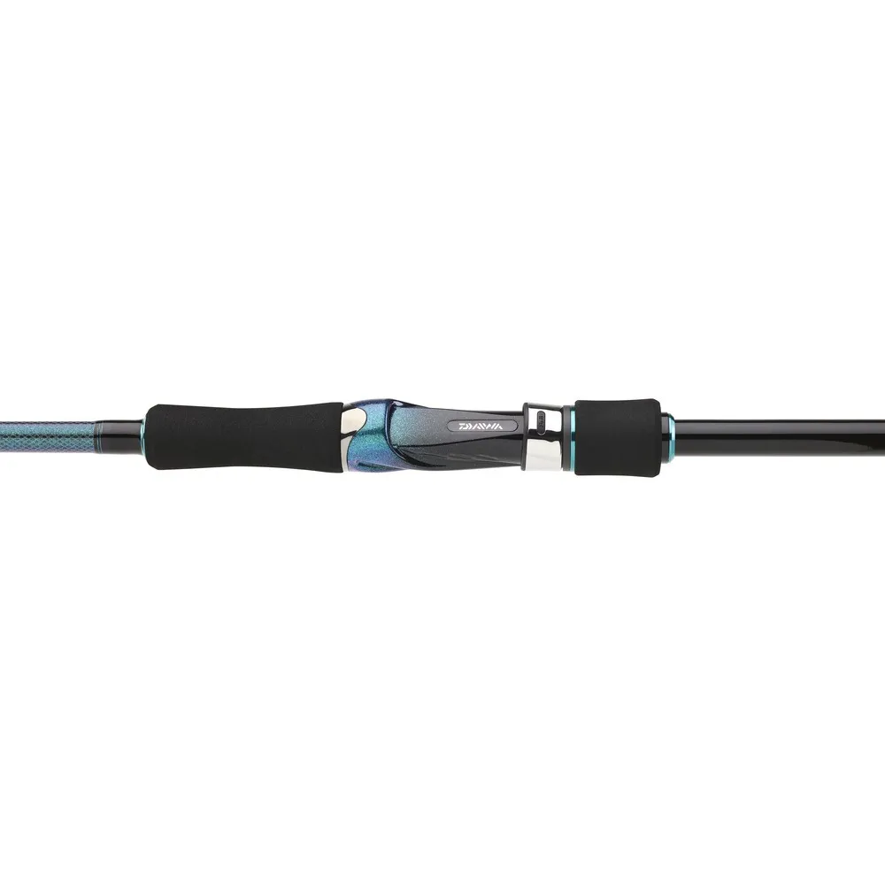 Dominez le jeu de l´eging avec l´élégante et sensible DAIWA Emeraldas E. Cette canne conçue spécifiquement pour les calamars et les seiches arbore un design noir et bleu clair élégant qui attire l´œil autant qu´il est efficace.