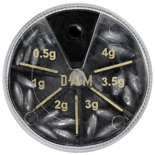 Assortiment de plombs olive à trou DAM | Poids de précision pour une pêche sensible