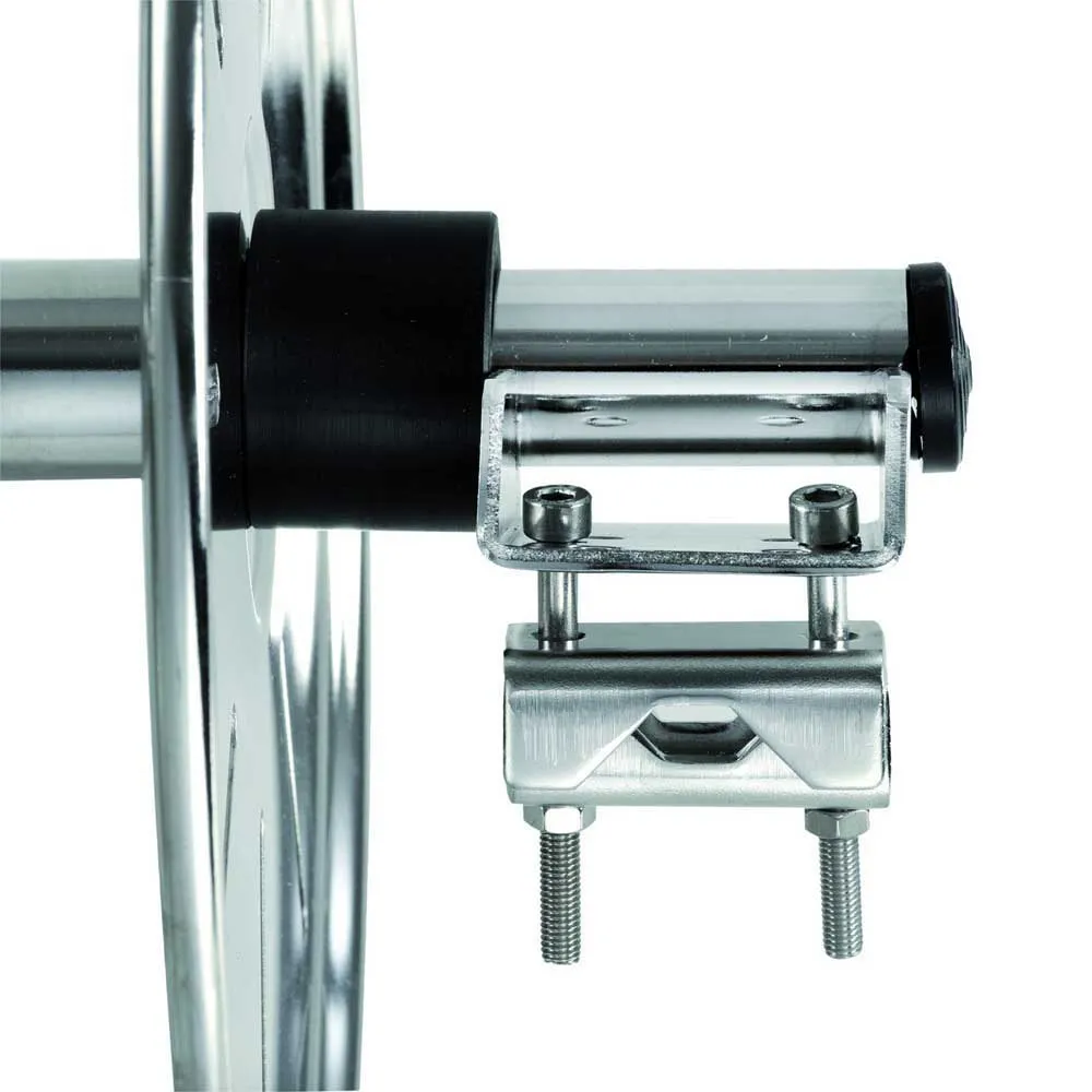 - En acier inoxydable poli. Fixation avec pince réglable en acier inoxydable pour suivre l'inclinaison des chaires. Équipé d'un embrayage à rouleau réglable.
