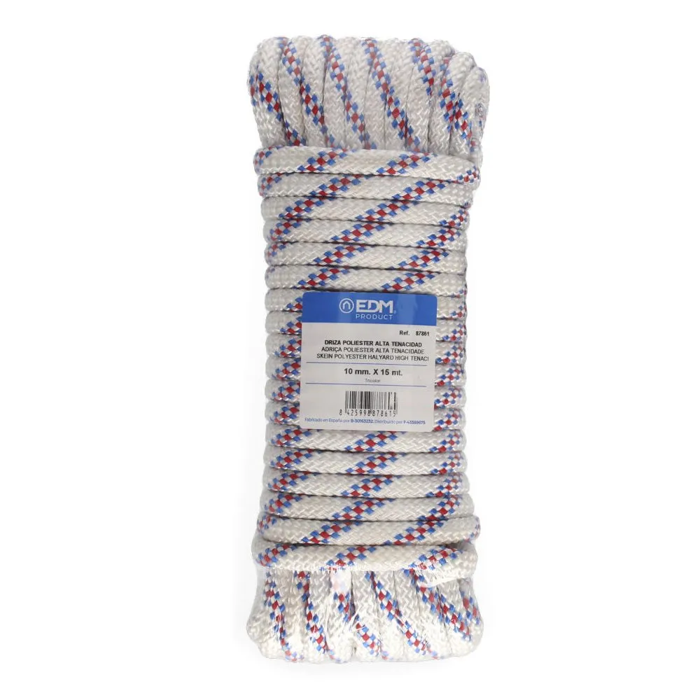 EDM 87861 Corde en polyester haute ténacité 15m x 8mm | Drisse fiable pour la croisière et la voile légère