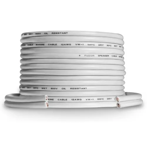 Ces câbles d´enceintes marines offrent une protection accrue contre les éléments, assurant une performance audio supérieure avec vos enceintes et caissons de basses Fusion. Spécialement conçus pour une utilisation sur les bateaux, les câbles en cuivre multibrins sont enveloppés d´une gaine en PVC blanc souple et flexible pour offrir une résistance à la température, aux flammes, aux surtensions et à l´huile à bord.
