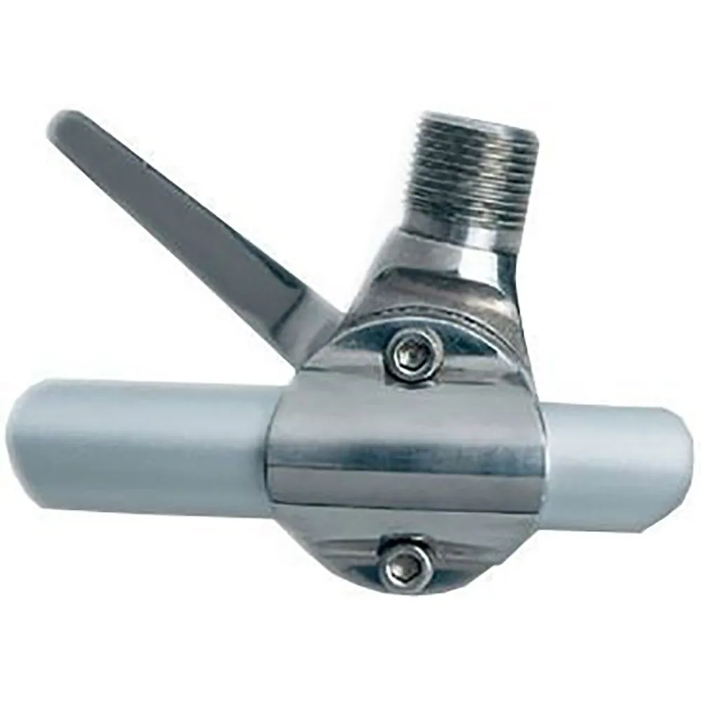 Rotule renforcée en en acier inoxydable poli, avec blocage par levier et passe-câble pour GPS. Fixation horizontale ou verticale sur balcon diamètre de 22 a 25 mm. Pour antennes de maximum 2.40 mts en fixations autoportantes. Filetage standard 1?x14.