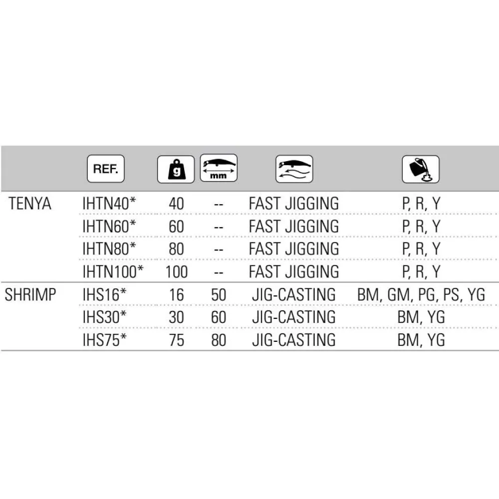 Conception du leurre selon une technique de pêche vieille de plusieurs siècles pratiquée au Japon. Il est basé sur la manipulation d'appâts naturels (normalement une crevette) comme s'il s'agissait d'un appât artificiel. Pour l'utiliser, montez l'appât (crevette ou petit calmar) sur l'hameçon fixe et avec l'hameçon d'assistance fixé à la tête. Grâce à sa forme effilée, notre Tenya est parfait pour la pêche verticale, profitant au maximum de la dérive du bateau. Laissez le leurre tomber au fond, en le soulevant avec de longs et lisses secousses, puis en le laissant retomber. La dorade, la dorade, la dorade blanche, l'aiglefin et les poissons de fond sont les principales proies.