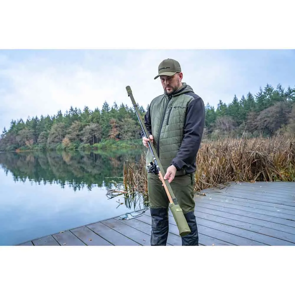 Cette protection compacte et rembourrée pour vos cannes est compatible avec tous les fourreaux et étuis à cannes Korum. La section élastique peut être ajustée pour convenir aux cannes en deux parties de 8´ à 13´. La section supérieure fine mesure 10cm x 4cm. La section inférieure large mesure 20 x 7cm.