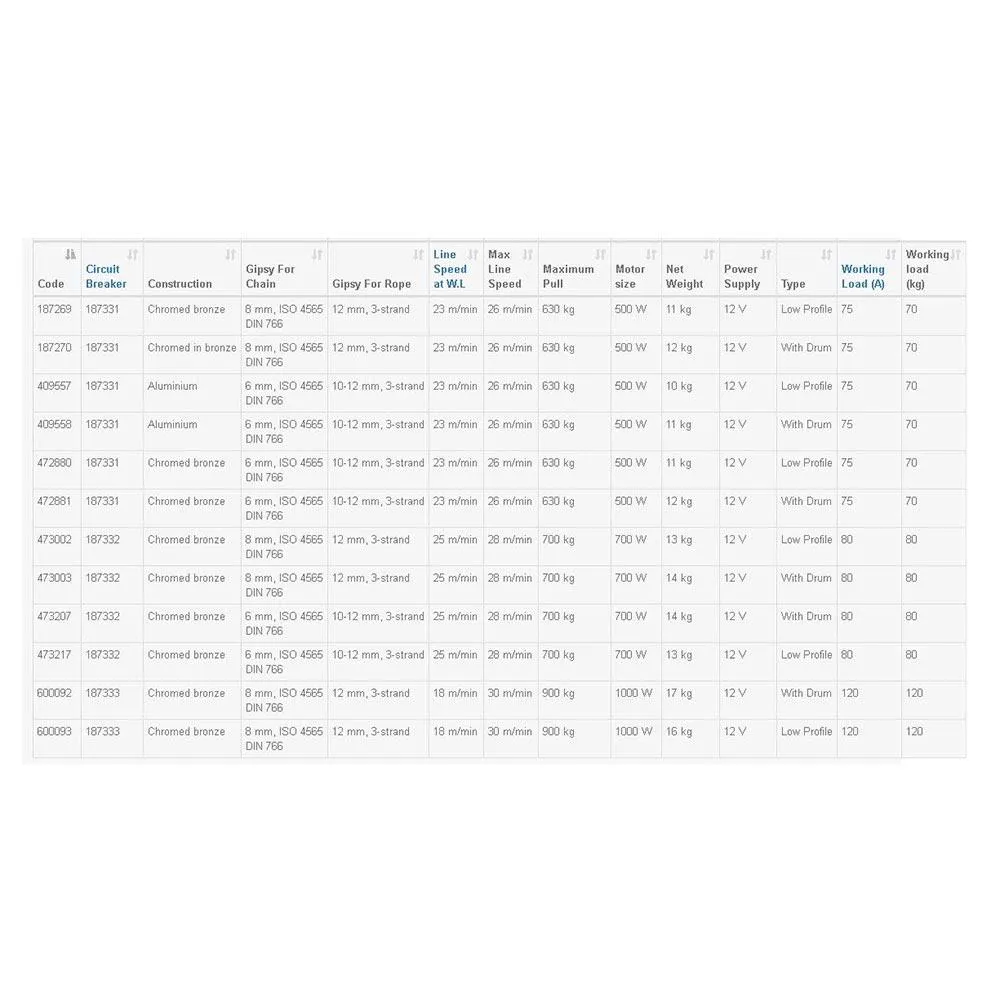 Les "X" guindeaux verticaux sont adaptés pour voiliers et bateaux à moteur de 6m à 27m de longueur. Ils ont des attributs de motorisation en fonction de chaque modèle. Pour le X2 et X3 guindeau guindeau il y a une version Plus en acier inoxydable AISI 316L poli miroir qui offre une plus grande protection contre la corrosion.