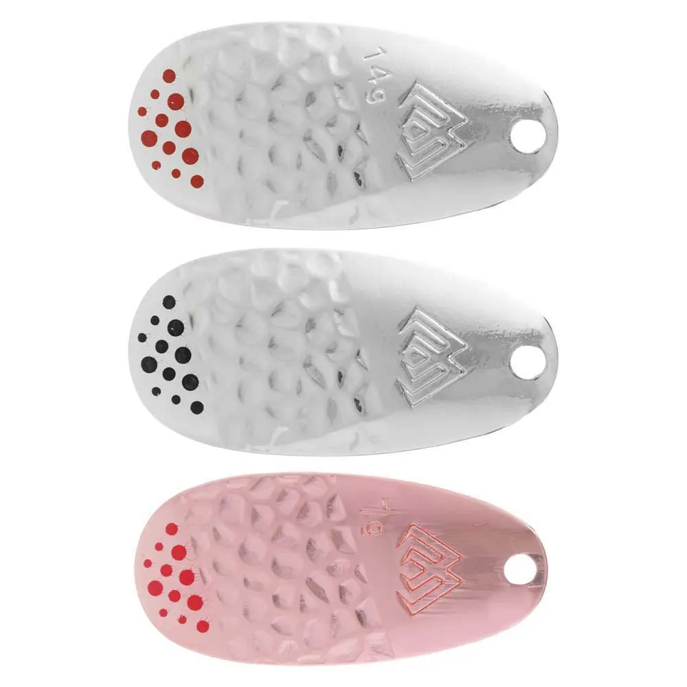 Visuellement, la Windmill 3 est un chef-d´œuvre d´attraction. Son revêtement unique à deux faces crée un flash et un scintillement constants et désorientants qui imitent parfaitement les écailles d´un poisson fourrage paniqué ou blessé. Lorsque la cuiller tourne, les côtés contrastés produisent un effet stroboscopique que les prédateurs peuvent repérer de loin, déclenchant leur réponse prédatrice instinctive. Cette conception à double face assure une visibilité et une efficacité maximales dans toutes les conditions d´eau, des ruisseaux cristallins aux lacs troubles et teintés.