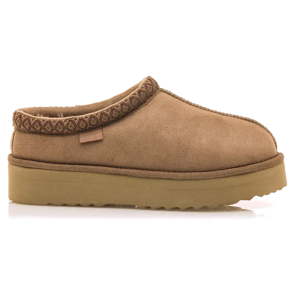 Sabots fourrés couleur taupe pour femme de la marque MTNG, modèle Nivia.